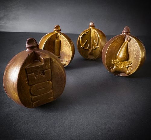 Les boules de Noël en chocolat de la Maison Moine offrent une expérience visuelle et gustative inoubliable. Véritables œuvres d'art comestibles, elles se distinguent par leur surface lisse et brillante, témoin de la qualité exceptionnelle du chocolat utilisé. Mais leur magie ne s'arrête pas là : sculptées avec finesse à l'intérieur, elles révèlent des symboles emblématiques de Noël, ajoutant une touche poétique et festive à leur élégante forme sphérique. Une création qui enchante autant les yeux que le palais, parfaite pour sublimer l'esprit des fêtes.
