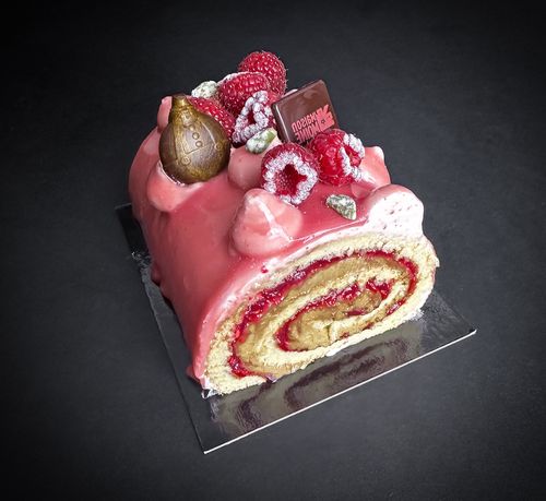 Fusion délicieuse de saveurs fruitées, associant la framboise, la passion, le litchi et la rose. Découvrez une buche de Noël atypique et gourmande.