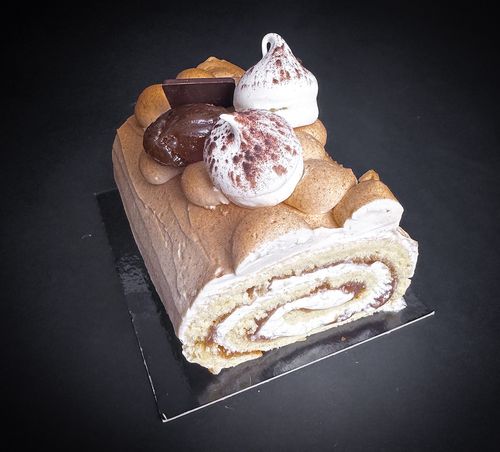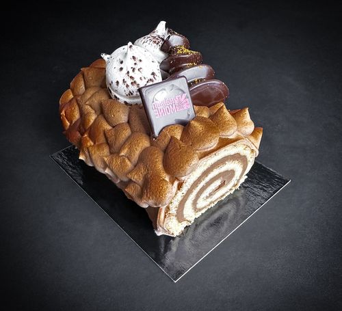 La bûche de Noël offre une combinaison riche et chaleureuse de saveurs automnales, mettant en valeur la châtaigne, le marron, le cassis et les débris de marron.